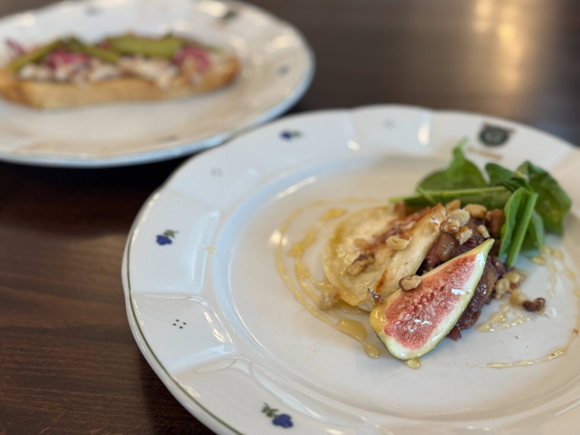 • Grilovaný kozí sýr s medem, ořechy a fíkovým chutney