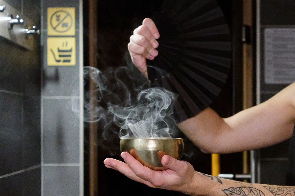 Tlumené světlo, vůně esenciálních olejů, hudba a precizní a osobitá práce saunéra vytváří zážitek, který působí na všechny smysly. Teplo přichází ve vlnách a postupně uvolňuje celé tělo.