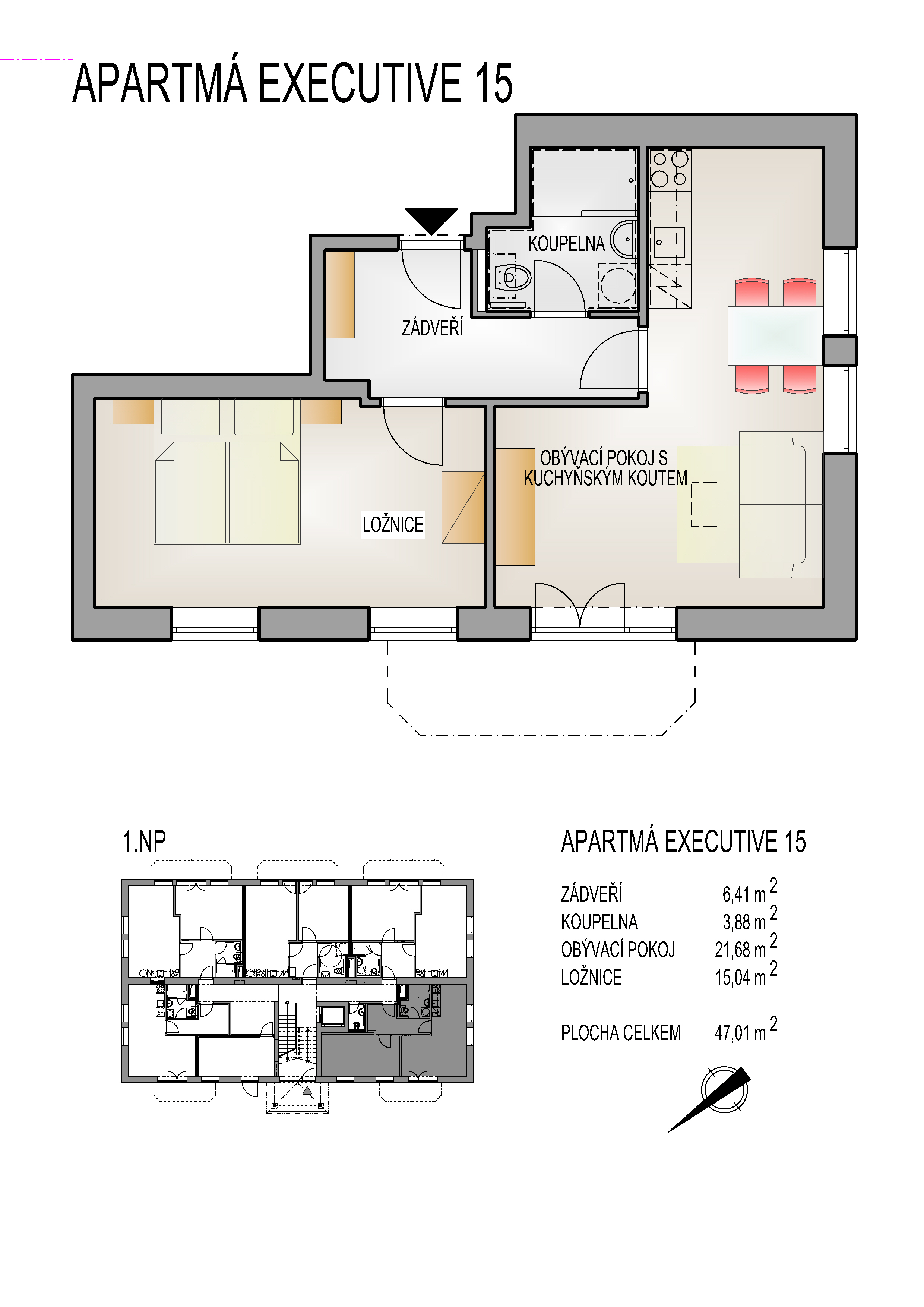 Rezervační poplatek při podpisu Smlouvy o smlouvě budoucí kupní 500 000 Kč. Plocha apartmánu 47,92 m2. Cena včetně vybavení bytu a včetně parkovacího místa před objektem je 5 040 000 Kč. Neplatíte provizi RK. Možnost dokoupit další parkovací místo za 200 000 Kč. Možnost financování hypotečním úvěrem.