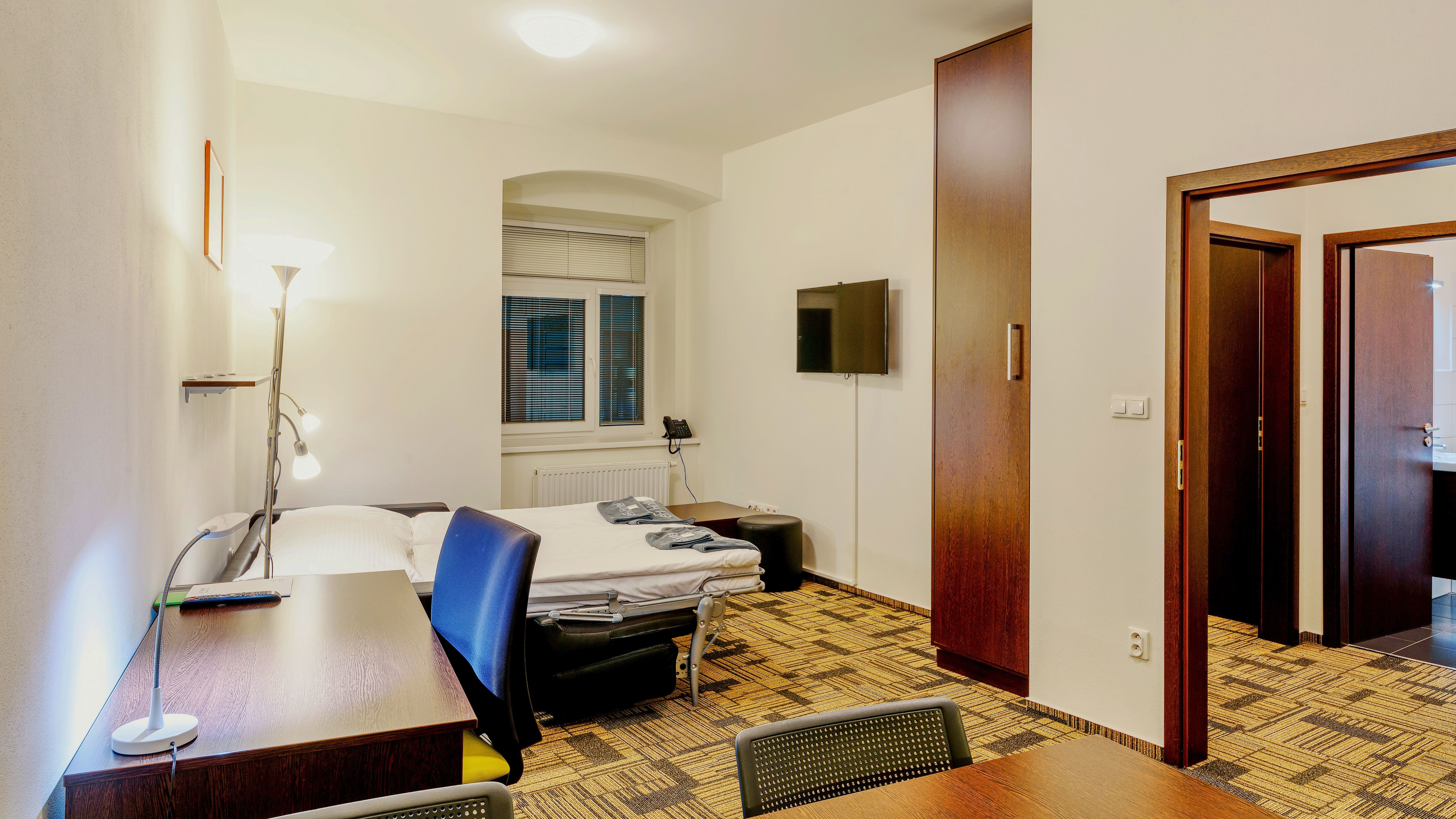 Prodej investičního bytu 2+kk (ateliér) v osobním vlastnictví v prvním patře víceúčelové budovy v blízkosti centra Brna. Byt je pronajat na dobu 3 let společnosti eFi Palace, s.r.o. (stávající vlastník, možnost prodloužení) s garantovaným nájemným 17 tisíc Kč měsíčně (204 tisíc Kč ročně).