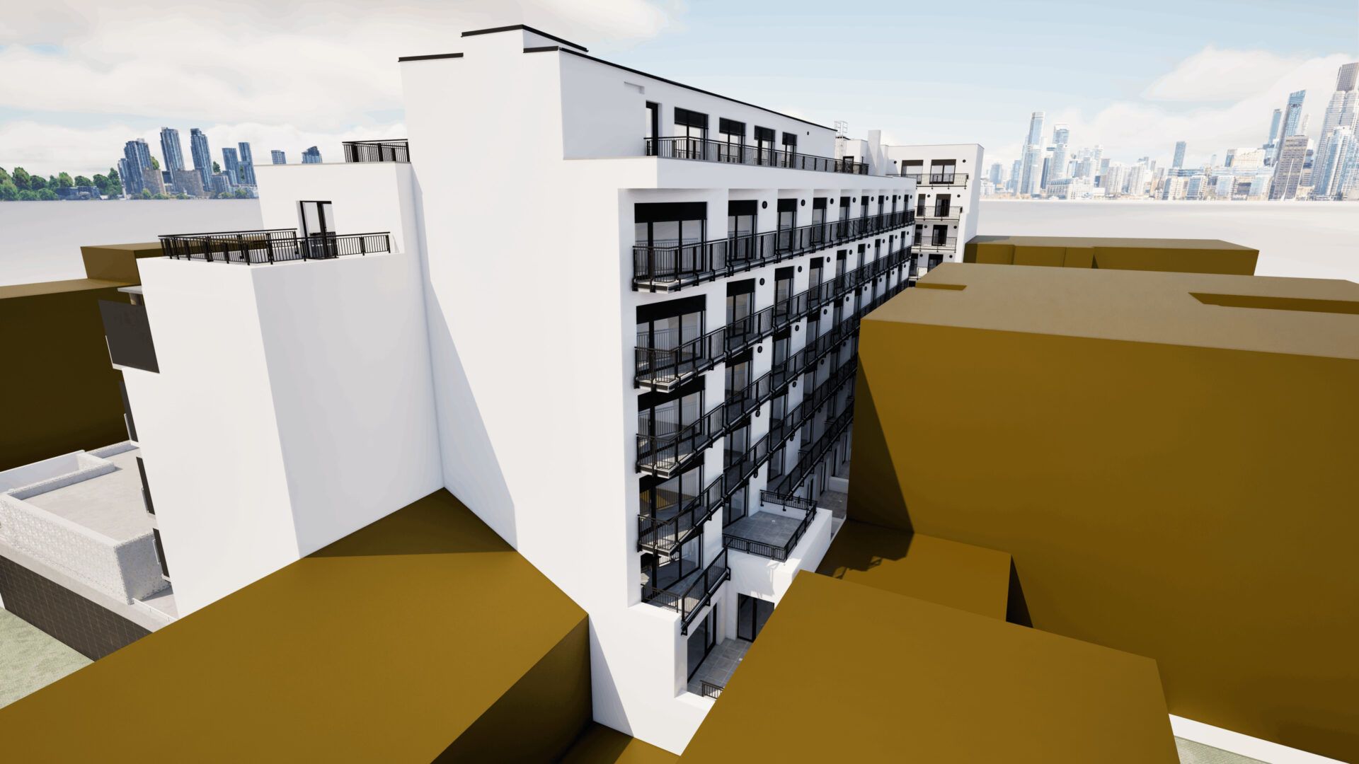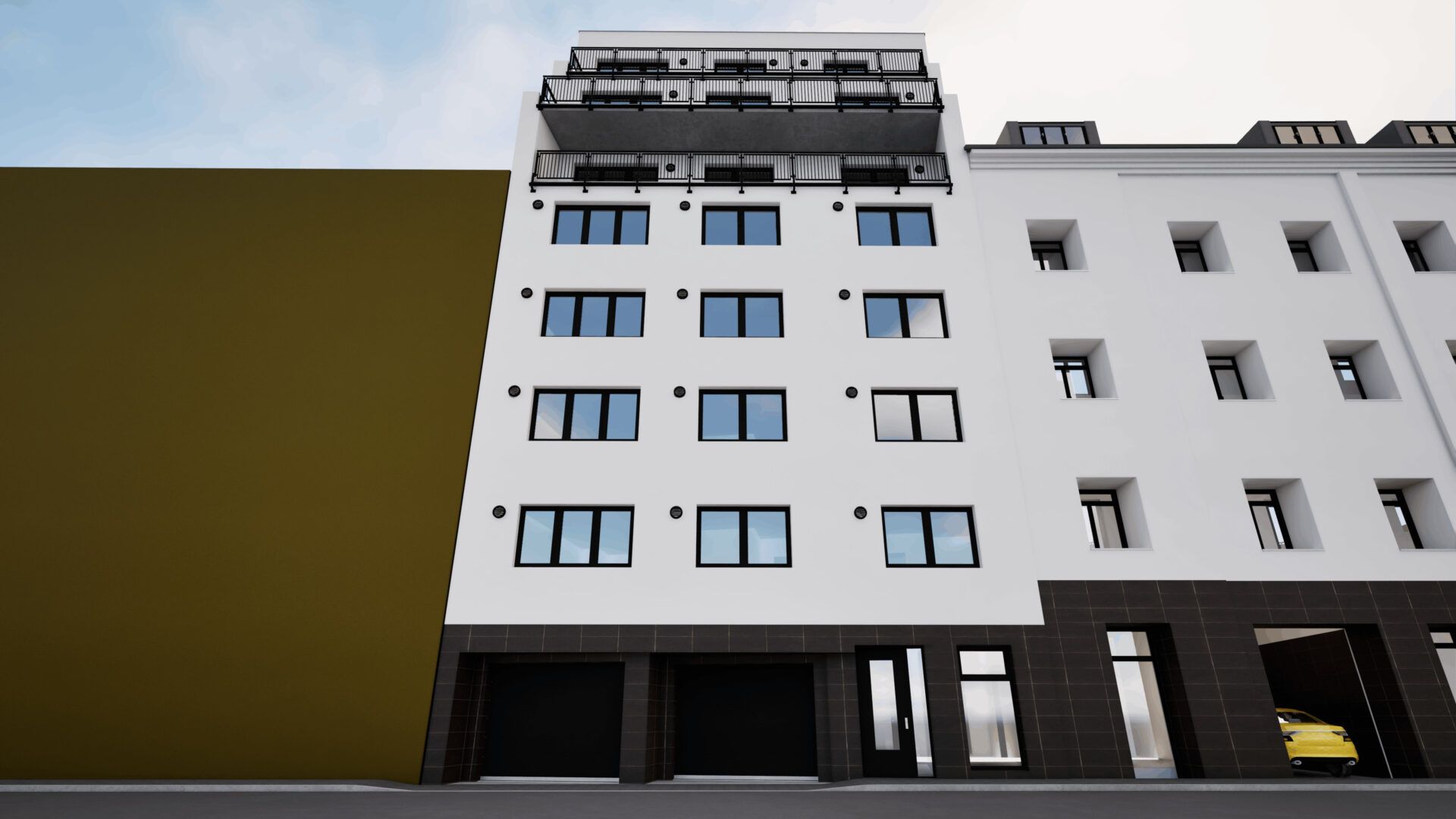 Desetipodlažní přístavba 60 bytů, kanceláře, garážePopis projektu